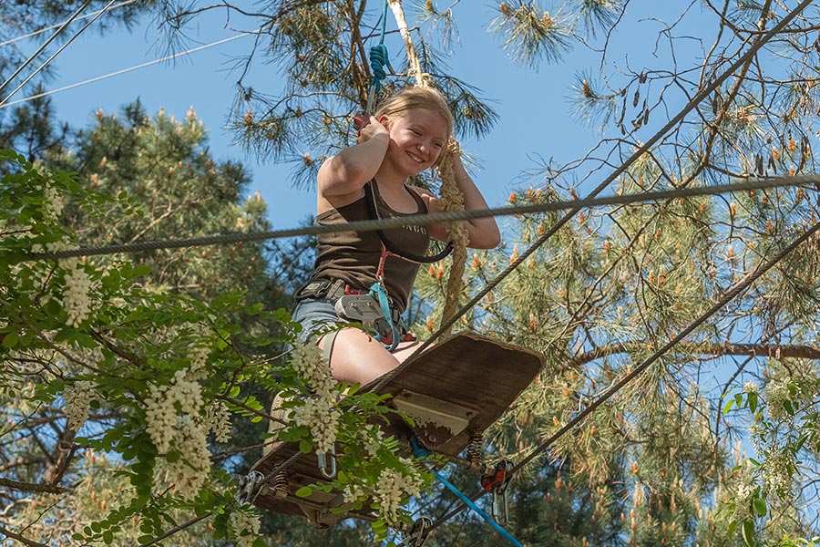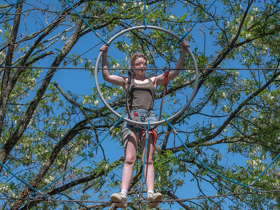Ces ateliers sont composés de tyroliennes, sauts de tarzan, ponts tibétains, rondins tournants, toboggans… sur des hauteurs allant jusqu’à 15m de haut